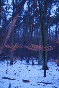 The first walk was to the Erptal, a small creek at the eastern edge of Berlin. I arrived there almost in the dark. The ground was still covered in snow and ice.