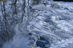 I knew where I was going. I knew what I was looking for. And I found it: The creek running over rocks, the bare trees bending in their own reflections, the water blurring everything into something almost painterly.