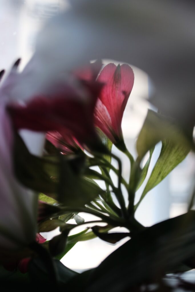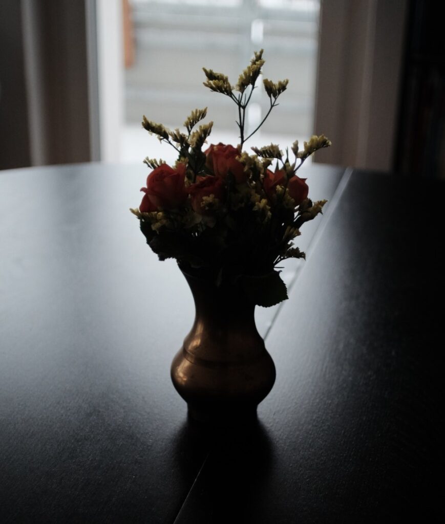 The second image is a flower arrangement I made in our new home in Schöneberg, where we’d just moved. The vase sits on the living room table, backlit by the window. The flowers rest right on the edge where light transitions into shadow, into darkness. They exist as silhouettes, almost black and white, but with subtle tones and colours breaking through.